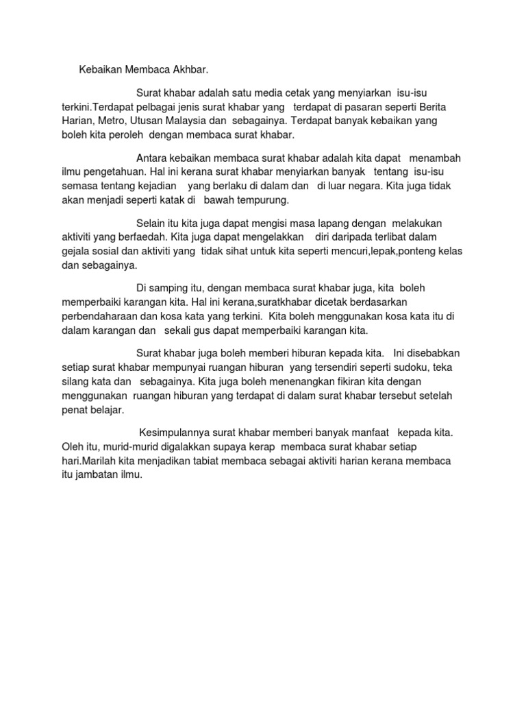 Membaca surat khabar merupakan satu akitivi yang amat berfaedah kepada semua orang. Contoh karangan faedah membaca موضوع المقالة. Portal Bantuan Rakyat Malaysia.